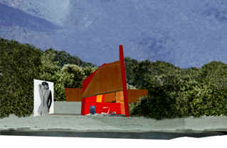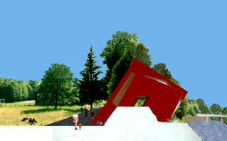 This station near Watschig on the way to Kötschach- Mauthen should offer a possibility for "artinterested" people to work in art with artists. Different niches in the building as well as a passage through the building will offer a new way to work with public in public.